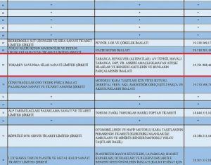 İkinci sırada Akplas Plastik Sanayi ve Ticaret A.Ş. (104 milyon 488 bin 235 TL), üçüncü sırada ise Enerya Konya Gaz Dağıtım A.Ş. (101 milyon 240 bin 531 TL) yer aldı.