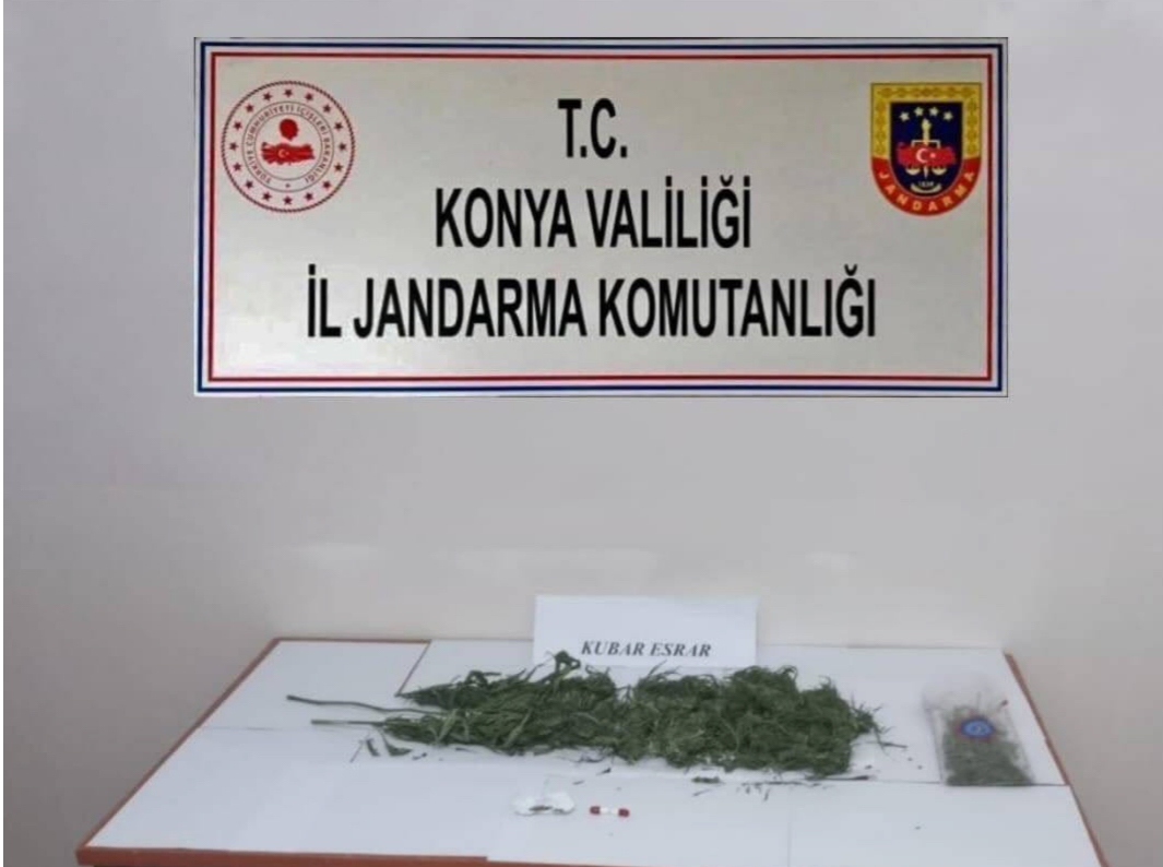 Çumra İlçe Jandarma Komutanlığı ekipleri ise, alınan duyum üzerine bir şahsın evine operasyon düzenledi. Aramada 380 gram kubar esrar, 2 adet sentetik hap ve 3 gram kenevir tohumu ele geçirilirken olayla ilgili adli tahkikat başlatıldı.